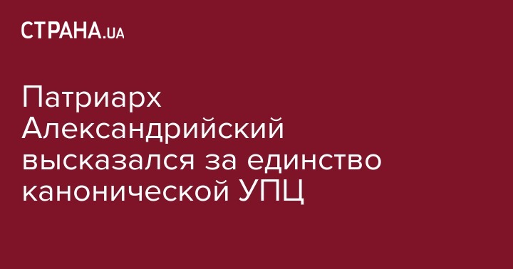Патриарх Александрийский высказался за единство канонической УПЦ