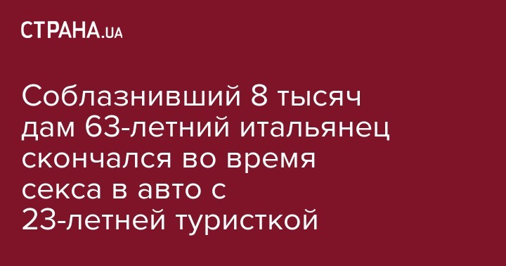 В Италии на окраине Римини скончался известный итальянский плейбой Маурицио Дзанфанти, которому, по его словам, удалось соблазнить не менее 8 тысяч женщин. Интим с последней из них оказался смертельным для него. Сердце 63-летнего Казановы не выдержало нагрузки от секса с 23-летней туристкой в автомобиле.  Причиной смерти стал инфаркт. Об этом пишет Bild.