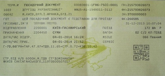 Бланк железнодорожного билета. Фото: mariupolnews.com.ua
