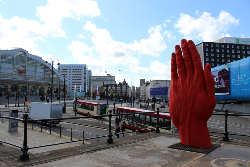 В Ливерпуле установлена его работа "The Middle Way" - красный близнец киевской руки.