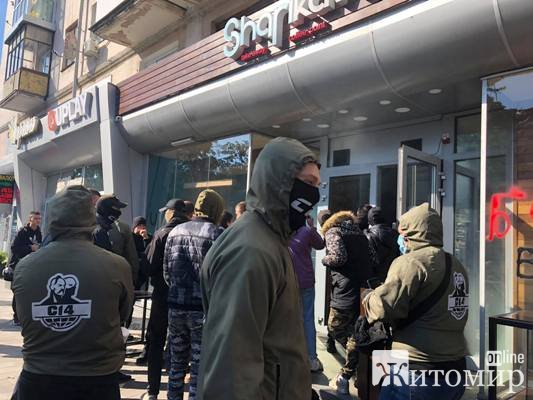 В пятницу, 28 сентября в Житомире активисты С-14 закидали дымовыми шашками кафе сети "Шарикава", владельцев которого они считают "ватниками". Инцидент произошел после потасовки в суде над блогером Муравицким, которая возникла между группой его поддержки и активистами С-14. Об этом пишет "Журнал Житомира".