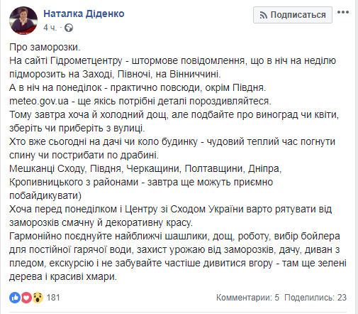 Скриншот: Facebook/ Наталка Діденко
