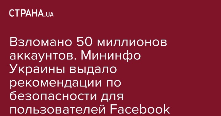 Замминистра информационной политики Дмитрий Золотухин дал рекомендации для пользователей Facebook в связи с хакерской атакой на учетные записи (аккаунты) в соцсети. Их он изложил на своей странице в Facebook.