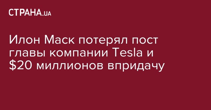 Знаменитый американский бизнесмен, глава компании Tesla Илон Маск, пошел на соглашение с федеральной Комиссией по ценным бумагам и биржам США об урегулировании претензий. Предприниматель выплатит в казну $20 млн, и уйдет с поста председателя совета директоров Tesla.