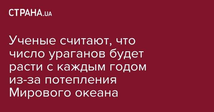 Другое исследование Национального управления океанических и атмосферных исследований продемонстрировало, что средняя температура поверхности Мирового океана за последние сто лет изменилась на 1,44 градуса Цельсия. Объединив эти данные, можно предположить, что при продолжении современной тенденции количество ураганов будет возрастать.