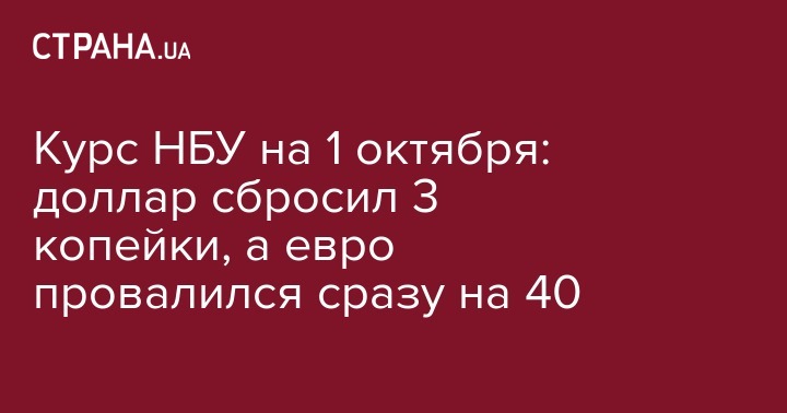 Курс НБУ на 1 октября: доллар сбросил 3 копейки, а евро провалился сразу на 40