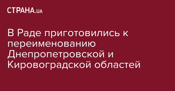 Народные депутаты Верховной Рады в четверг, 4 октября, планируют рассмотреть законопроекты о переименовании двух областей – Кировоградской и Днепропетровской. Об этом сообщил спикер парламента Андрей Парубий во время согласительного совета.