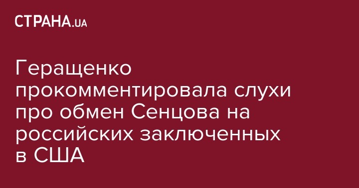 Геращенко прокомментировала слухи про обмен Сенцова на российских заключенных в США