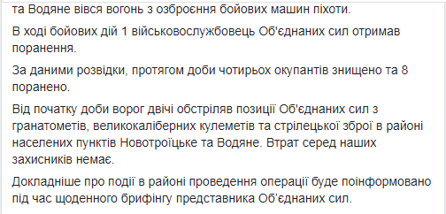 Скриншот: Facebook/ Операція об'єднаних сил / Joint Forces Operation