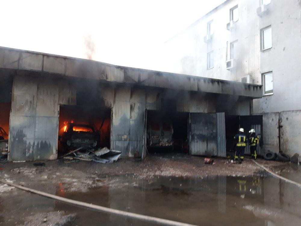 В Соломенском районе Киева загорелся ангар с автомобилями, едкий дым виден за сотни метров. Фото