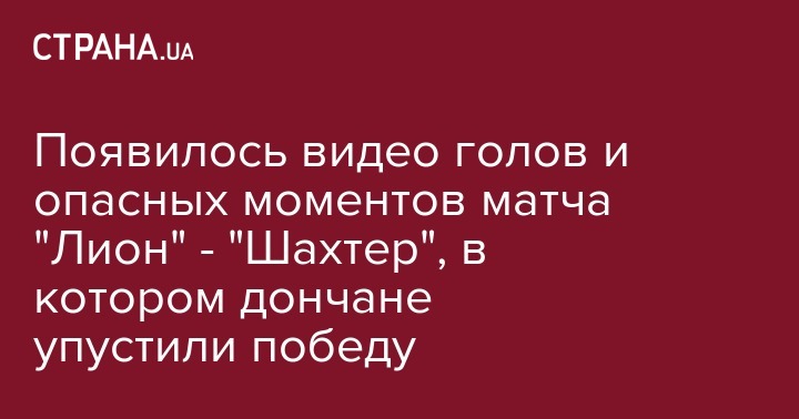 Появилось видео голов и опасных моментов матча "Лион" - "Шахтер", в котором дончане упустили победу