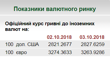 Что касается российской валюты, 3 октября официальный курс НБУ: 10 российских рублей – 4.3354 гривны, подорожание составило 0,033 грн.