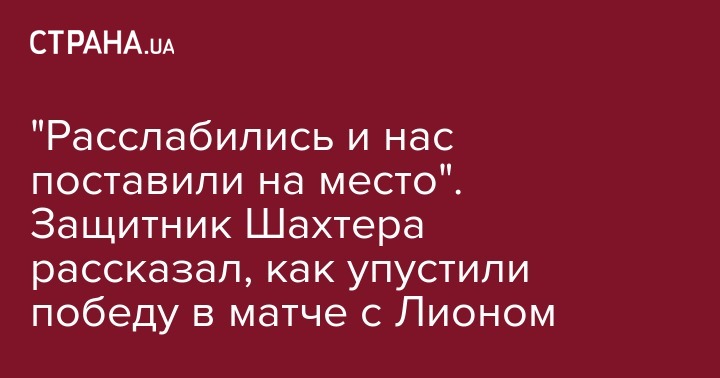 "Расслабились и нас поставили на место". Защитник Шахтера рассказал, как упустили победу в матче с Лионом