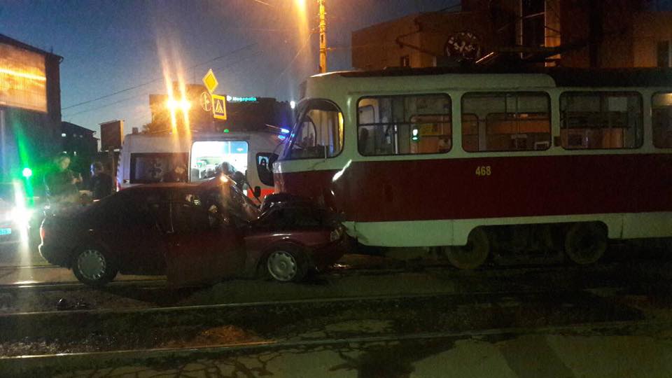 В Харькове евробляхер "впечатался" в трамвай. Трое парней попали в больницу