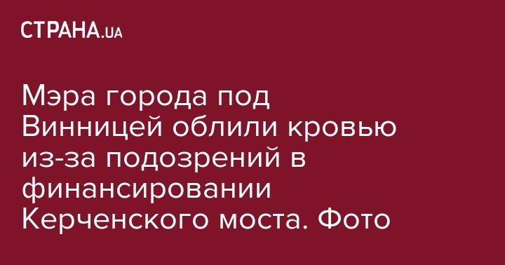 Мэра города под Винницей облили кровью из-за подозрений в финансировании Керченского моста. Фото