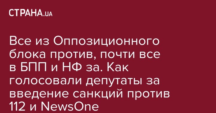 Все из Оппозиционного блока против, почти все в БПП и НФ за. Как голосовали депутаты за введение санкций против 112 и NewsOne
