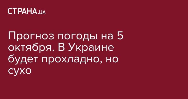 Погода в Украине сегодня, 5 октября, будет на всей территории Украины солнечной и сухой, но уже довольно прохладной. Об этом информирует Укргидрометцентр.