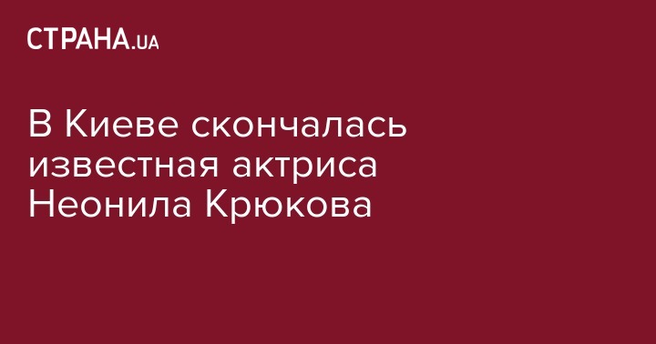 В Киеве на 75 году жизни умерла актриса Неонила Крюкова, известная по фильмам "На Киевском направлении", "Пропавшая грамота" и "Кайдашева семья". Об этом в Facebook написал глава художественного объединения "Последняя баррикада" Олесь Доний.