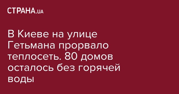 В Киеве на улице Гетьмана 27а прорвало теплосеть. В связи с этим восемь жилых домов, три лечебных учреждений, пять детских садов и пять школ в настоящий момент лишены горячего водоснабжения. Информация об этом появилась на странице ПАО "Киевэнерго" в Facebook.