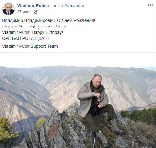 Отметим, что на официальной странице Путина в Facebook опубликована запись с поздравлением от администраторов его страницы в соцсети.