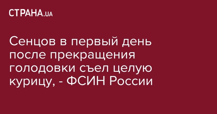Тюремщики украинского политзаключенного Олега Сенцова заявляют, что в первый день после прекращения 145-дневной голодовки политзаключенный якобы съел целую домашнюю курицу и наваристый бульон. Об этом рассказал замглавы Федеральной службы исполнения наказаний России Валерий Максименко.