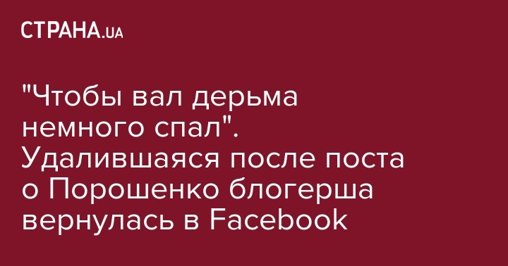 "Чтобы вал дерьма немного спал". Удалившаяся после поста о Порошенко блогерша вернулась в Facebook