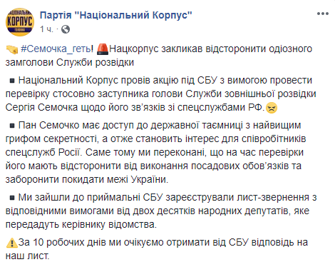 Также активисты требуют от СБУ запретить ему выезд за пределы государства. Активисты надеются получить ответ на свое требование в течение 10 рабочих дней.
