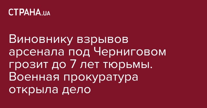 Виновнику взрывов арсенала под Черниговом грозит до 7 лет тюрьмы. Военная прокуратура открыла дело