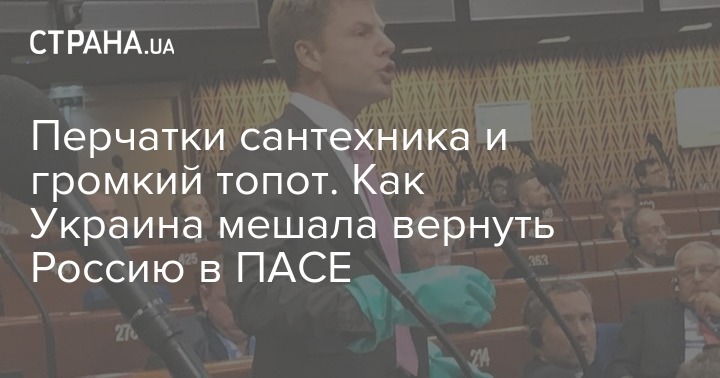 Украинская делегация сегодня и правда "жгла" на заседании Ассамблеи. Так, нардеп Алексей Гончаренко пришел на заседание в перчатках сантехника. Так он хотел показать, что Россия виновна в отравлении Скрипалей, которым яд нанесли на ручку двери.