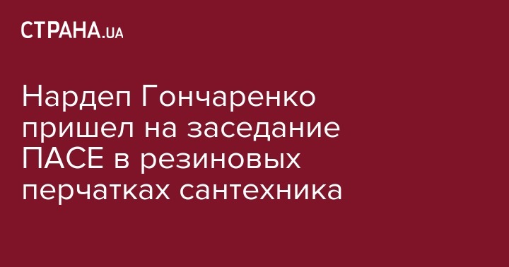 Народный депутат от БПП Алексей Гончаренко пришел на Парламентскую ассамблею Совета Европы в резиновых сантехнических перчатках. Фотографии с Гончаренко появились в социальных сетях. Их обнародовал журналист Руслан Коцаба.