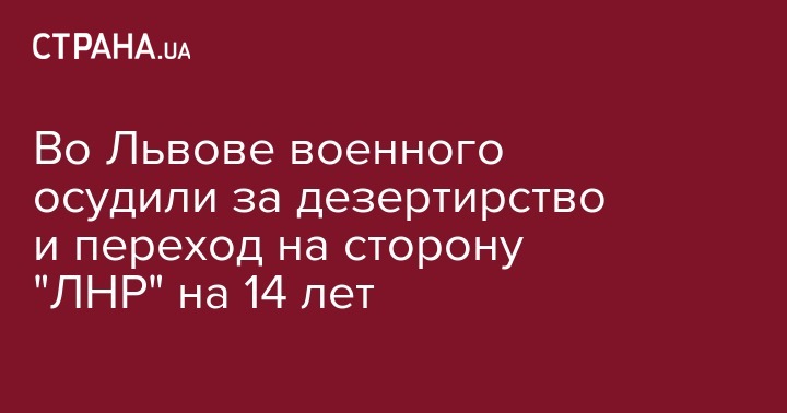 Шевченковский районный суд Львова 8 октября приговорил к 14 годам лишения свободы с конфискацией имущества военнослужащего одной из воинских частей Львовской области за дезертирство и государственную измену. Об этом говорится в сообщении военной прокуратуры Западного региона.