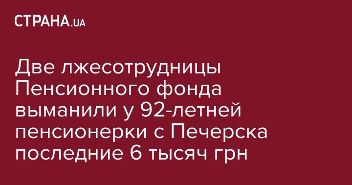 Две лжесотрудницы Пенсионного фонда выманили у 92-летней пенсионерки с Печерска последние 6 тысяч грн