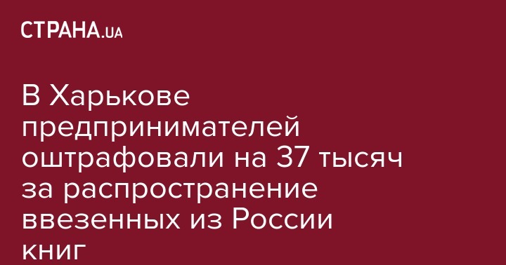 В Харькове за незаконное распространение российских книг оштрафовали четырех предпринимателей. Таковы результаты совместного рейда Госкомтелерадио и СБУ по выявлению и пресечению незаконной реализации книжной продукции, завезенной из России без разрешительных документов, пишет "Украинская правда".