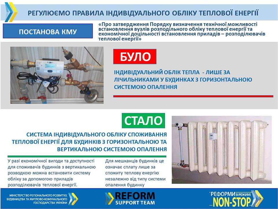 Сегодня, 10 октября, Кабмин разрешил устанавливать распределительные счетчики учета тепловой энергии в старых домах с вертикальной системой отопления. Об этом на своей странице в Facebook написал вице-премьер-министр - министр регионального развития, строительства и ЖКХ Геннадий Зубко.