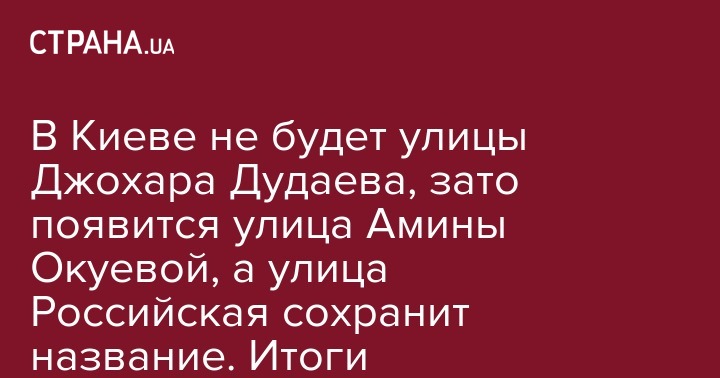 В Киеве не будет улицы Джохара Дудаева, зато появится улица Амины Окуевой, а улица Российская сохранит название. Итоги голосования