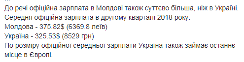 Официальная зарплата в Молдове также существенно больше, чем в Украине. Во втором квартале 2018 года она составила: