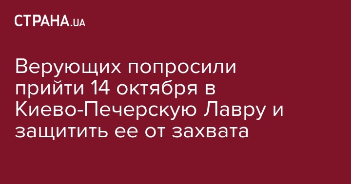Верующих попросили прийти 14 октября в Киево-Печерскую Лавру и защитить ее от захвата