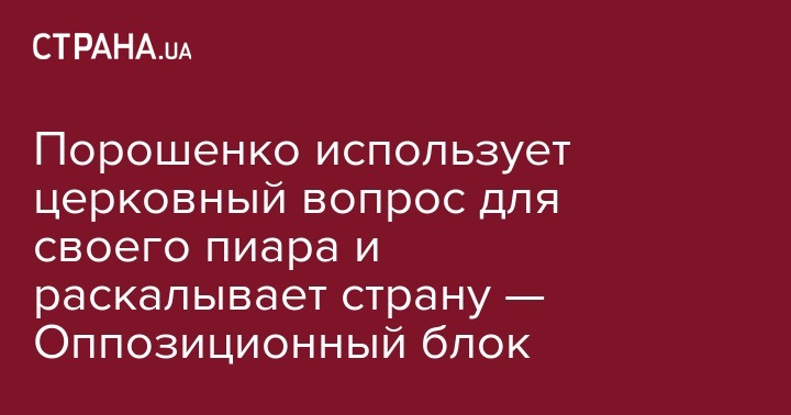 Порошенко использует церковный вопрос для своего пиара и раскалывает страну — Оппозиционный блок