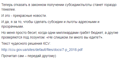 "Конституционный суд своим решением признал неконституционным право Министерства финансов получать информацию, содержащую ваши персональные данные. Скажем честно, такую информацию Минфин стремился получать без вашего согласия чтобы усомниться в ваших правах на получение субсидий, льгот, иных выплат. Усомниться и лишить вас законных прав - аннулировать получение льгот и субсидий. И назывался этот тотальный контроль – верификацей/проверкой социальных выплат. Суд посчитал это неконституционным и неоправданным вмешательством в право человека на частную и семейную жизнь", - написала она.