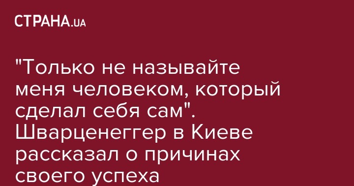 Кроме того, на самом форуме он рассказал о причинах своего успеха. "Вы можете называть меня Арни, Шварц, Терминатор и даже Шницель. Но только не называйте меня человеком, который сделал себя сам. За моим успехом - любовь родителей. Работа сотен людей, которые помогали мне выглядеть лучше на съемочной площадке. Миллионы людей, проголосовавших за меня на выборах губернатора в Калифорнии", - цитирует его в Facebook Андрей Длигач.