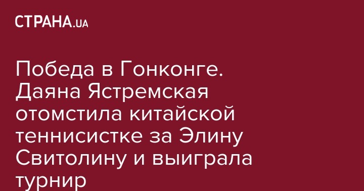 На теннисном турнире в Гонконге произошла сенсация. Третья ракетка Украины Даяна Ястремская в финале турнира в двух сетах обыграла 24-й номер мирового рейтинга спортсменку из Китая Ван Цян - 6:2, 6:1. Матч длился чуть более часа. Победа над 24-й ракеткой мира Ван Цян стала для украинки самой высокорейтинговой.