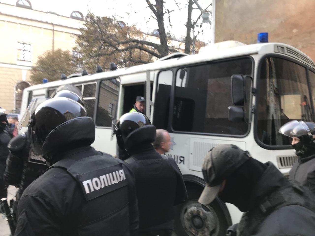 Под Лаврой задержали толпу загадочных провокаторов и увезли их на автобусе