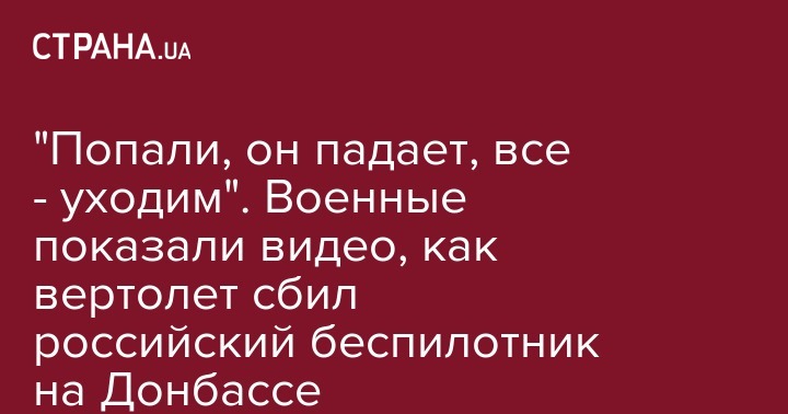 "Попали, он падает, все - уходим". Военные показали видео, как вертолет сбил российский беспилотник на Донбассе