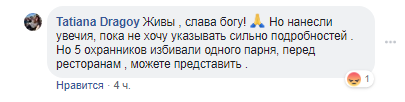Отвечая на вопросы в комментариях к посту она отметила, что все же избивали одного парня, и это произошло не в ресторане, как указано в первоначальном сообщении, а перед зданием.