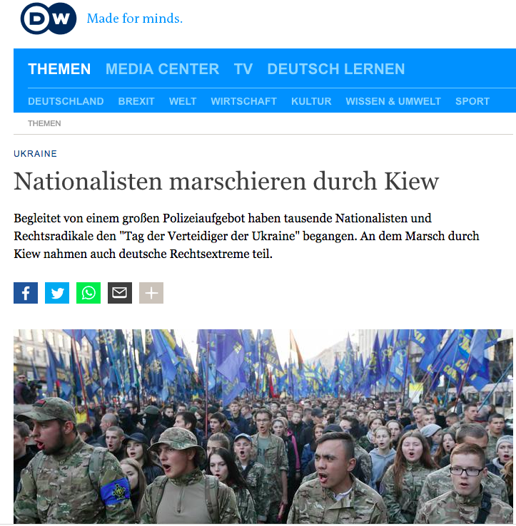 "Немецкие правые экстремисты приняли участие в марше по Киеву", - отмечает "Немецкая волна".