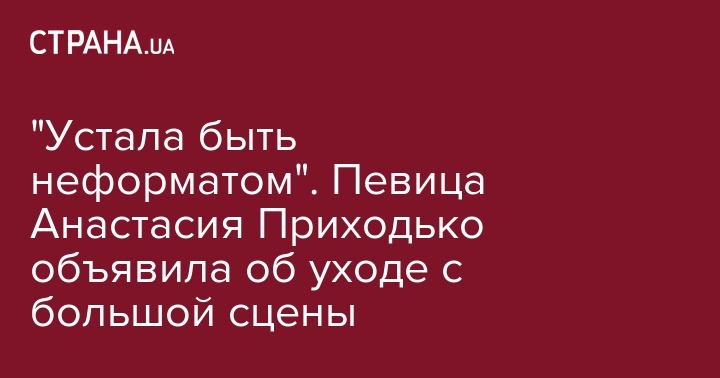 Украинская певица Анастасия Приходько заявила о своем уходе со сцены. Об этом она написала на своей странице в соцсети.