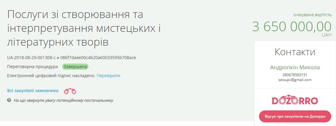 Согласно договору на сайте ProZorro, из 3,65 миллионов гривен 349 тысяч потратили на создание эскиза мурала, 3,12 милиона - на создание росписи площадью 2700 квадратных метров и еще 183 тысячи гривен ушло на уплату единого налога.