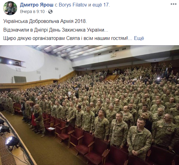 Интересно, что даже День защитника Украины актив УДА отмечал в Днепре.