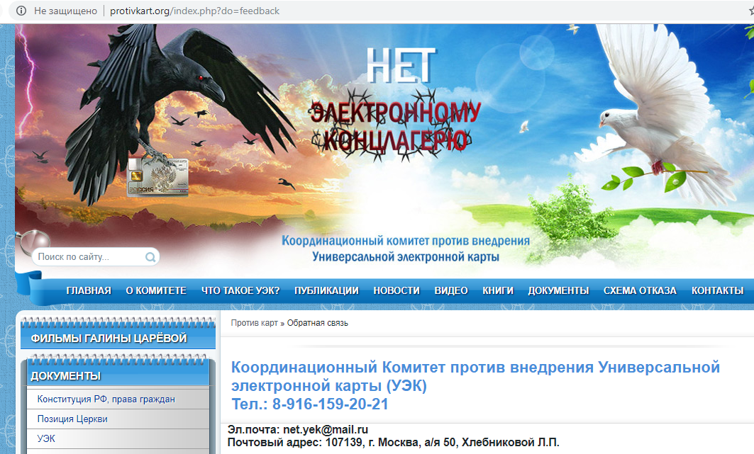 Отметим, что по указанному адресу находится сайт, на котором публикуется информация околорелигиозного содержания, а в разделе "Контакты" указан московский адрес. Также на ресурсе содержится информация для граждан РФ.