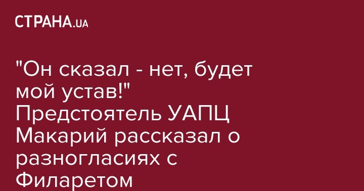 "Патриарх Филарет (глава УПЦ КП - Прим. Ред.) обратился ко мне и сказал "Срочно нужно Собор созывать". Я ему говорю: "Собор собирать нет устава" -"А устав у меня есть". "У меня тоже есть, но из двух уставов надо сделать один устав" - "Нет, будет мой устав", - отметил Макарий.